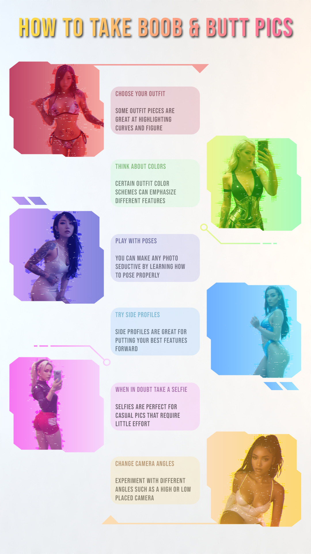 - 1.11.5 How should I choose the right outfit for taking butt and boob pics?